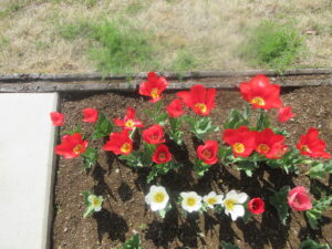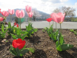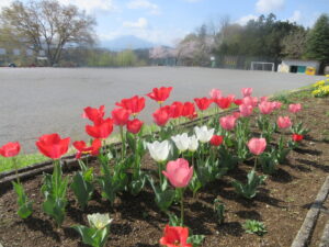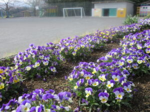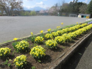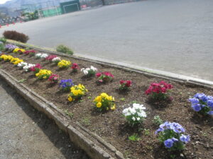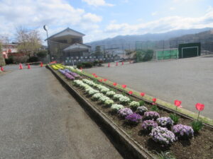 4月6日(月)、始業式を前に彩り豊かなお花が子供たちを待っています。