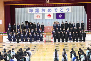令和7年度の卒業証書授与式が盛大に挙行できました。卒業生の気持ちのこもった歌や、呼びかけに在校生も応え、緊張感のある中にも温かみのある卒業式となりました。卒業生のこれからの活躍を期待したいと思います。