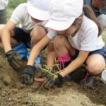 9日(木)の5時間目に学校園でさつまいも掘りを行いました。学校運営協議会の皆様にご協力をいただきながら、三沢っ子は夢中になってさつまいもを収穫していました。今年はシルクスイート94.5kg、紅あずま102.3kg、合計196.8kg収穫できました。収穫祭で焼き芋を食べるのが楽しみですね。