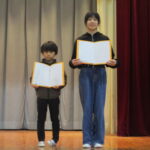 1時間目に体育館で令和7年度の修了式を行いました。各学年の代表児童が修了証書を受け取ったり、代表児童が1年間頑張った事の作文発表を行ったりしました。一人一人がしっかりとした態度でのぞむことができて立派でした。