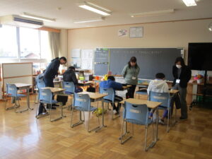英語、社会、理科、生活単元の4つのクラスに分かれて授業を行いました。