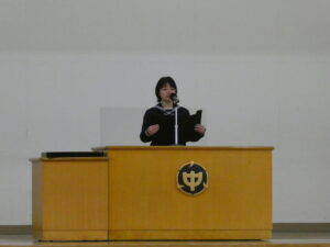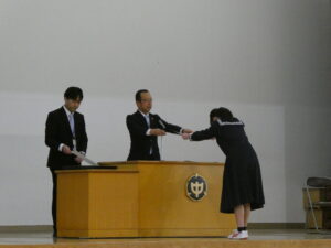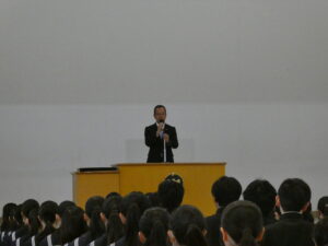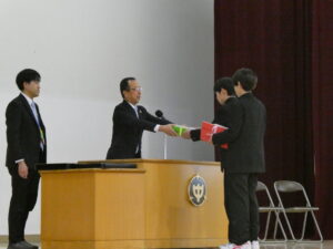 令和7年度の修了式が行われました。代表生徒から1年の振り返りと、次年度への決意の発表がありました。校長先生からは、「感謝」についてのお話がありました。1日の生活の中で、どれだけの感謝があるのでしょうか。当たり前と思っていることを振り返ってみて「感謝」について考えてみてください。