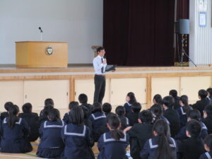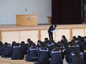 全校集会では、生徒指導や安全、情報、部活動についてなど、大切なお話がたくさんありました。