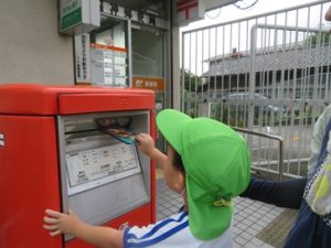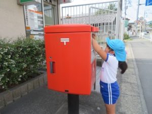 敬老の日に向けて、おじいちゃん、おばあちゃんにプレゼントを作り、郵便局へいってポストへ投函してきました。