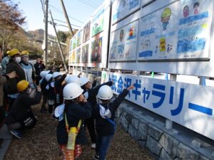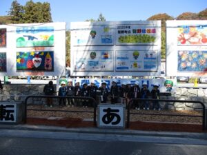 年長児が描いた絵が、上武金沢ギャラリーという場所に飾られ、現場で働く人たちの交通安全の一端を担っています。