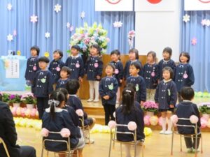 令和7年度の卒園式が行われ、14名の卒園児が幼稚園から巣立ちました。